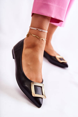 Skórzane Baleriny Z Ozdobą W Szpic Czarno-Złote Simone