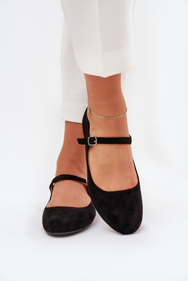 Baleriny Z Paskiem Eko Zamszowe Czarne Arrivara