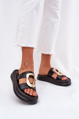 Klapki Damskie Na Platformie Ze Złotym Detalem Czarne Ularinea