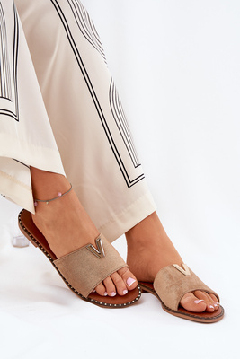 Klapki Damskie Na Płaskim Obcasie Z Ozdobnymi Detalami Khaki Saliena
