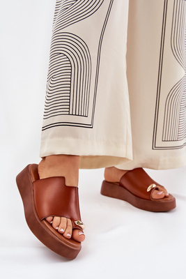 Klapki Damskie Na Platformie I Niskim Koturnie Z Ozdobnym Detalem Camel Saqesse