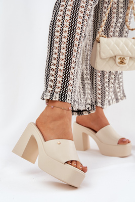 Damskie Klapki Z Eko Skóry Na Słupku I Platformie Jasnobeżowe Tamirella