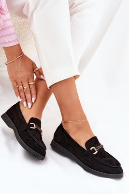 Mokasyny Damskie Ze Złotym Detalem Czarne Labirae