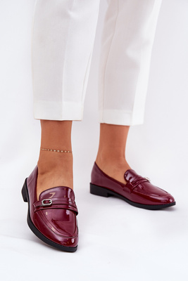 Lakierowane Mokasyny Damskie Z Ozdobną Sprzączką Bordowe Mollan