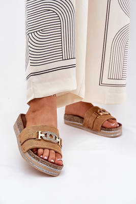 Klapki Damskie Ze Złotym Detalem Na Platformie Z Brokatem Camel Eanes