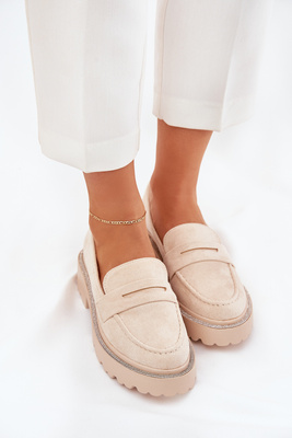 Mokasyny Damskie Eko Zamszowe Z Cyrkoniami Beżowe Wilamla