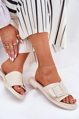 Skórzane Klapki Damskie Z Klamrą D&A SJ2302-01 Beżowe