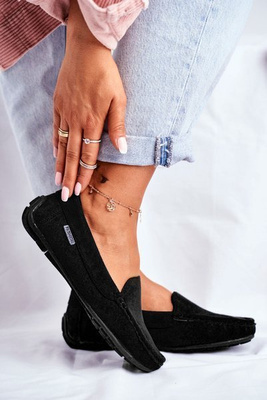 Mokasyny Damskie Czarne Zamszowe Morreno