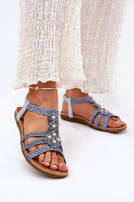 Sandały Damski Płaskie Z Plecionymi Paskami Artiker 56C1325 Niebieskie