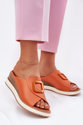 Klapki Damskie Skórzane Na Koturnie Artiker 56C2149 Pomarańczowe