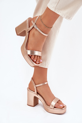 Eko Skórzane Sandały Na Słupku Różowe Złoto Lillita