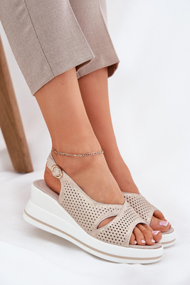 Skórzane Sandały Damskie Na Koturnie S.Barski LR51-660 Złote
