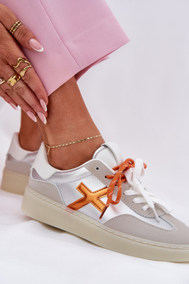 Niskie Buty Sportowe Damskie Z Eko Skóry Złoto-Beżowe Iladira