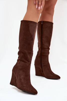Ocieplane Kozaki Damskie Na Koturnie Czekoladowe Rosina