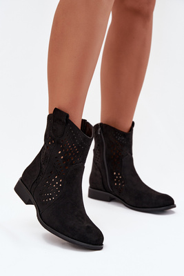 Botki Damskie Z Ażurowym Wzorem Na Płaskim Obcasie Eko Zamszowe Czarne Athera