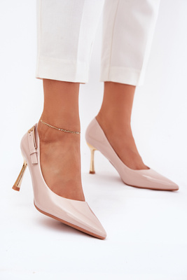 Lakierowane Szpilki Ze Złotą Klamrą Beżowe Mivira
