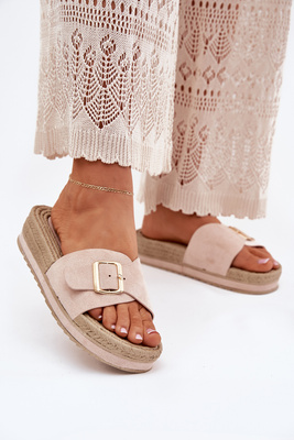 Klapki Damskie Na Platformie Ze Złotą Klamrą Beżowe Selira