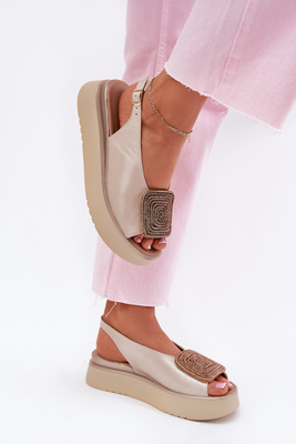 Zazoo 1786 Skórzane Sandały Damskie Na Platformie Z Ozdobą Perłowy Beż