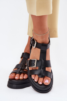Eko Skórzane Sandały Damskie Z Klamrami Czarne Mireza