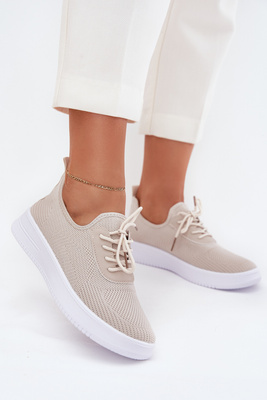 Materiałowe Wsuwane Buty Sportowe Na Platformie Damskie Beżowe Kalyra