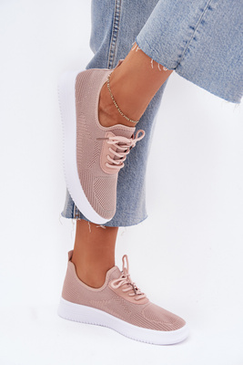 Materiałowe Wsuwane Buty Sportowe Na Platformie Damskie Różowe Kalyra