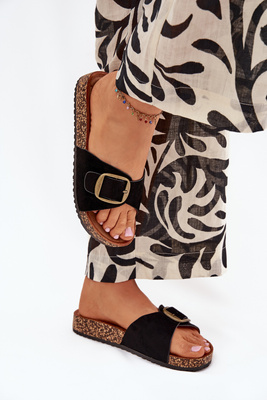 Klapki Damskie Z Klamrą Na Korkowej Platformie Czarne Zavira