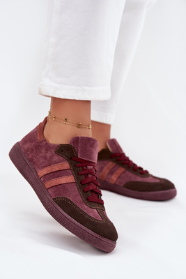 Zazoo N1068 Zamszowe Niskie Sneakersy Damskie Bordowe