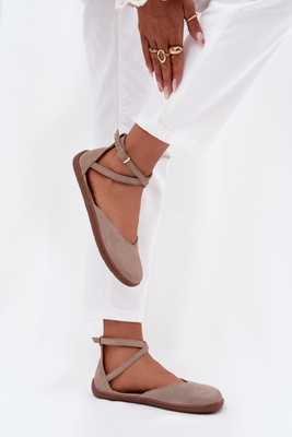 Zamszowe Baleriny Damskie Barefoot Z Paskami Zazoo 191 Szare