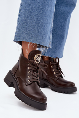 Ocieplane Botki Damskie Ze Złotym Detalem Czekoladowe Kavirae