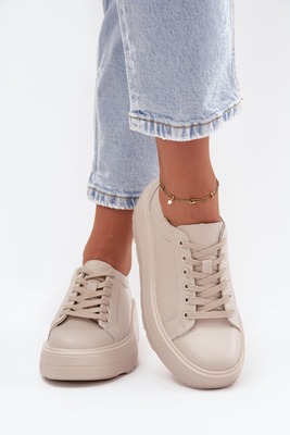 Skórzane Sneakersy Na Masywnej Platformie Beżowe Sylvessa