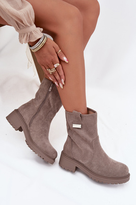 Ocieplane Botki Damskie Na Niskim Obcasie Szare Mirellea