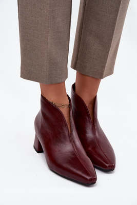 Eko Skórzane Botki Damskie Na Obcasie Bordowe Rylina