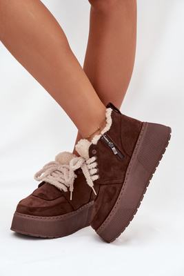 Śniegowce Damskie Na Platformie Z Futerkiem Typu Baranek Brązowe Luma