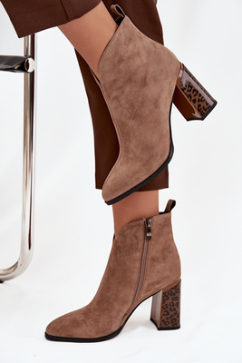 Skórzane Zamszowe Botki Damskie Na Słupku Ocieplane Beżowe Zivella