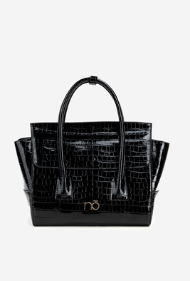 Lakierowana Torebka Kuferek Z Tłoczeniem NOBO BAG5810-M20 Czarna