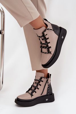 Skórzane Botki Damskie Na Platformie Ocieplane Artiker 55C0884 Beżowe