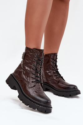 Skórzane Botki Damskie Z Efektem Marszczenia I Klamrą Artiker 57C1007 Czekoladowe