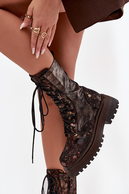 Damskie Skórzane Botki Workery Maciejka 06203-32 Brązowo-Złote