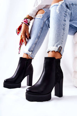 Wysokie Skórzane Botki Na Słupku Czarne Diomice