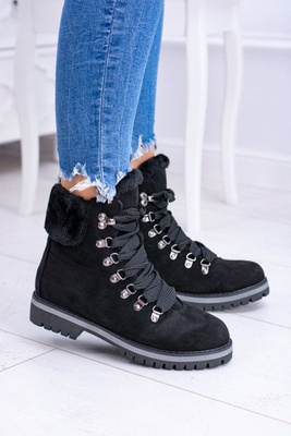Czarne Damskie Traperki Z Futerkiem Timberki Vices K2
