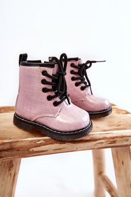 +2Dziecięce Botki Ocieplane Z Suwakiem Lakierowane Różowe Goopy