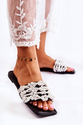 +1Damskie Klasyczne Klapki Z Perłami Czarne Calipso