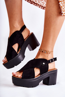 Zamszowe Sandały Na Obcasie Czarne Arlena