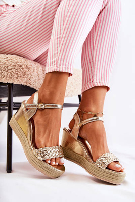 +3Skórzane Sandały Na Koturnie Złote Gabriela