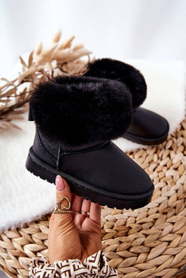 Skórzane Dziecięce Botki Śniegowce Z Futerkiem Czarne Madie