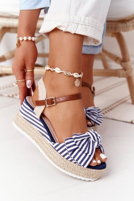 +1Sandały Na Koturnie W Stylu Marynarskim Niebieskie La Isla Bonita