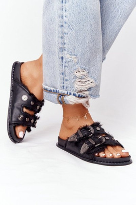 Klapki Z Klamrami I Futerkiem Czarne Lydi