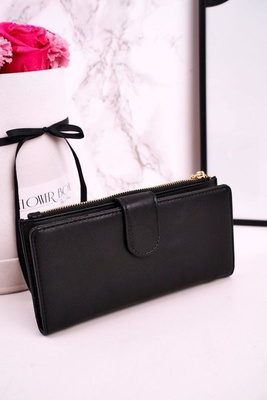 +4Duży Portfel Damski Z Dodatkową Portmonetką I Frędzlami Czarny