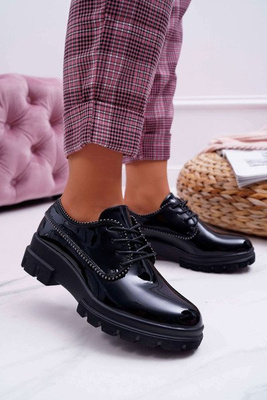 +1Botki Damskie Płaski Obcas Glany Lakierowane Czarne Sergio Leone BT530