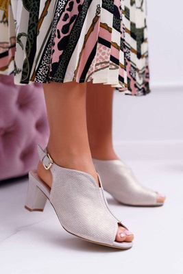 +1Damskie Sandały Na Słupku Eleganckie Z Paskami Beżowe Villey